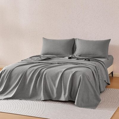 Hurry and grab the Amazon Basics Cationic Microfiber 4-Piece Sheet Set, Queen in Grey for only $14.99.