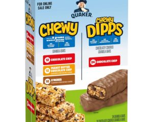 Add the Quaker Chewy Granola Bars, Chewy & Dipps Variety Pack, (58 Bars) to get it for only $10.16. That’s a 43% discount! Quaker Chewy Granola Bars, Chewy & Dipps 4 Flavor Variety Pack includes (24) Chewy Dipps Chocolate Chip, (12) Chewy Chocolate Chip, (12) Peanut Butter Chocolate Chip, (10) Smores flavors Includes 58 individually wrapped Quaker Chewy Granola Bars you can enjoy at home,