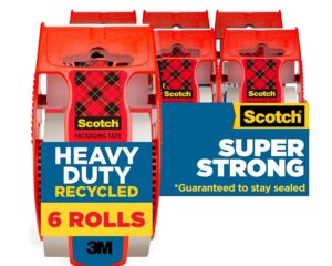 Scotch Heavy Duty Recycled Shipping Packing Tape, 6 Roll Dispensers Only $11.61