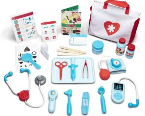 Save 61% off the Melissa & Doug 25-Piece Get Well Doctor Kit! Click here to get it for only $16.49. Imaginative Doctor Play: Kids check on patients, give pretend shots, and write prescriptions for endless imaginative medical play that sparks creativity and role-playing fun every day 25-Piece Doctor Kit: Includes stethoscope, blood pressure cuff, thermometer, syringe, hearing tester, and more, all stored in a handy