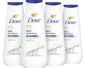 Clip the $5.22 off coupon and check out via Subscribe & Save to get the Dove Body Wash Deep Moisture, 4 Count for only $13.50. 24HR RENEWING MICROMOISTURE: Dove Deep Moisture Body Wash gently cleanses and deeply moisturizes the skin, leaving it renewed and healthy-looking for 24 hours FOR SOFT, SMOOTH SKIN: Our deeply moisturizing body wash, formulated with millions of MicroMoisture droplets, leaves skin