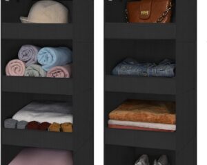 Clip the 50% off coupon to get the GRANNY SAYS 4-Shelf Hanging Organizer, 2 Pack in Black for only $14.99! Appropriate Size – The closet hanging organizers measures 37 ½” H X 12″ W X 12″ D, each shelf is 7 ¾” H X 12″ W X 12″ D. In addition, the hook is 6 ¼” H. The closet organizer and storages can be used