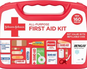 Be ready for anything with the Johnson & Johnson All-Purpose Portable Compact First Aid Kit for only $13.99. That’s the lowest price on record. 160-piece Johnson & Johnson All-Purpose Portable Emergency First Aid Kit is ideal for home, in cars, outdoors, dorm rooms, & while camping, cooking or on-the-go to help care for minor cuts, scrapes, burns, itches, pain, skin rashes & insect bites All-purpose,