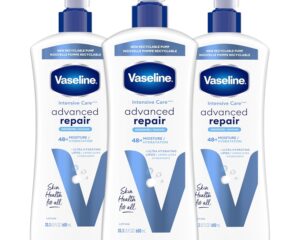 Clip the 10% off coupon and check out via Subscribe & Save to get the Vaseline Intensive Care Unscented Body Lotion, 20.3 oz, Pack of 3 for only $8.26. REPAIRS EXTREMELY DRY SKIN: Vaseline Intensive Care Advanced Repair Unscented Body Lotion locks in moisture and repairs extremely dry skin FORMULATED WITH ULTRA-HYDRATING LIPIDS: This unscented body lotion for dry skin is formulated with Vaseline Jelly