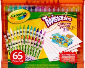Save 50% off the Crayola Twistables Colored Pencils Set, 65 pieces! Get it now for only $8.99. TWISTABLES COLORED PENCILS: Features 25 Crayola Twistables Colored Pencils and 40 Sheets of Paper in a durable plastic case PORTABLE STORAGE: Store your art supplies in the included art case for convenient, portable fun. The durable container makes it easy to bring your favorite art tools along wherever