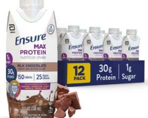 Clip the 40% off coupon and check out via Subscribe & Save to get the Ensure Max Protein Shake, 12 Pack for only $15.38. Available in Chocolate or Vanilla at that price. 30g PROTEIN & 1g SUGAR: Each Ensure Max Protein shake has 30g protein to support muscle health and manage hunger 25 VITAMINS & MINERALS: Formulated with nutrients to support immune, bone, and brain