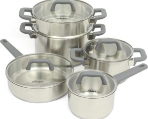 Oster Beauford 9-Piece Stainless Steel 5-Ply Encapsulated Base Cookware Set Only $39.76