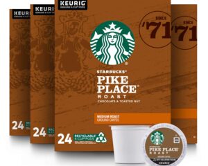 Clip the 10% off coupon and check out via Subscribe & Save to get the Starbucks Pike Place Medium Roast K Cups, 96 Ct for only $39.65! PREMIUM COFFEE IN KEURIG K-CUPS—Starbucks delivers exceptional coffee cup after cup with Pike Place Roast medium roast coffee K-Cups—96 total coffee pods for Keurig coffee makers STARBUCKS PIKE PLACE ROAST COFFEE—A smooth, well-rounded blend of Latin American coffees