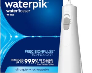 Lowest price ever on the Waterpik Cordless 1100 Rechargeable Portable Water Flosser! Click here to get it for only $30.99. RECHARGEABLE WATER FLOSSER: Waterpik Cordless 1100 (WF-30CD) is a great choice for portable water flossing, travel, and home. Includes the clinically proven Waterpik Precision tip for everyday use, a rechargeable battery, and can be used in the shower. EASY TO USE: Ergonomically designed non-slip hand