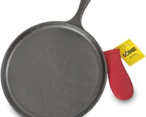 Lowest price ever on the Lodge Cast Iron Round Griddle with Red Silicone Hot Handle Holder, 10.5-inch! Click here to get it for only $19.90. The Lodge Cast Iron Griddle delivers heavy-duty performance, with lower side walls and a wider cooking surface. Great for the stovetop, campfire or oven. SEASONED COOKWARE. A good seasoning makes all the difference. Lodge seasons its cookware with 100% vegetable
