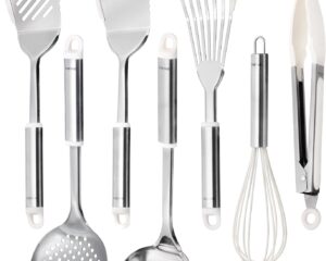 Huge price drop on the CAROTE 7-Piece Stainless Steel Cooking Utensils Set! Get it now for only $9.49. Stainless Steel with Silicone: This 7-piece utensil set is crafted from stainless steel, ensuring durability and a comfortable grip with its ergonomic handle design. The utensil heads are made from stainless steel with silicone, which won’t scratch or damage non-stick coatings, providing a safe cooking experience. Protects
