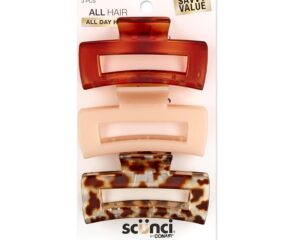 Clip the $0.89 off coupon to get the 3 Pack Scunci by Conair Hair Claw Clips, 3 inch for only $2.77. DURABLE HAIR CLAW CLIP SET: Set includes 3 claw clips in tort, taupe, and giraffe animal print made of durable plastic and reliable springs. Perfect for throwing in your purse or gym bag. NO-SLIP GRIP CLAW HAIR CLIPS: No-slip grip technology holds styles on