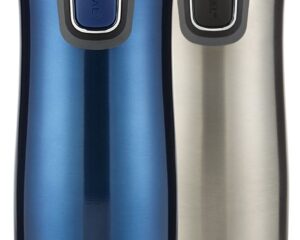 Travel with all the beverages from water bottles to coffee mugs, with this special savings opportunity: save up to 41% off Contigo products today! Options start at only $8.87. and include this Contigo Autoseal West Loop Vaccuum-Insulated Stainless Steel Travel Mug, 16 Oz, Stainless Steel/Monaco Blue, 2-Pack for only $23.86. Patented Autoseal lid automatically seals between sips to eliminate spills and leaks Lid underside flips