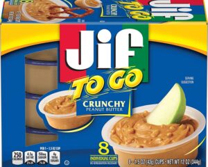 The delicious taste of Jif Crunchy Peanut Butter in a convenient, right-sized cup. Perfect for dipping your favorite snacks! Get Jif To Go Crunchy Peanut Butter, 48-1.5 Ounce Cups, 9g (7% DV) of Protein per Serving, Packed with Peanuts for Extra Crunch, Snack Size Packs for only $11.60 right now. Contains 48- 1.5 ounce individual cups of Jif Crunchy Peanut Butter Portable, disposable, easy-to-use cups
