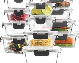 24-Piece Superior Glass Food Storage Containers Set – Newly Innovated Hinged BPA-free Locking lids – 100% Leak Proof Glass Meal Prep Containers, Great on-the-go & Freezer to Oven Safe Food Containers $31.44