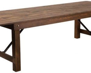 This table really caught my eye….and what a great price! This rustic farm table is a beauty! This solid table features a plank, solid pine top with folding legs! This table is great if you ever need to move it out of the way with the convenience of foldable legs. Pins pull out to fold the legs that securely lock underneath the table. The same