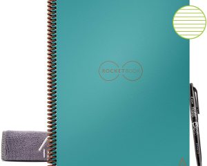 Rocketbook Smart Reusable Notebook – Lined Eco-Friendly Notebook with 1 Pilot Frixion Pen & 1 Microfiber Cloth Included – Neptune Teal Cover, Letter Size (8.5″ x 11″) $21.92
