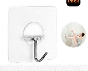Wall Hooks 13lb(Max) Transparent Reusable Seamless Hooks,Waterproof and Oilproof,Bathroom Kitchen Heavy Duty Self Adhesive Hooks,8 Pack $6.79