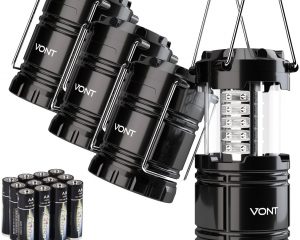 Vont 4 Pack LED Camping Lantern, LED Lantern, Suitable for Survival Kits for Hurricane, Emergency Light, Storm, Outages, Outdoor Portable Lanterns, Black, Collapsible, (Batteries Included) $19.99