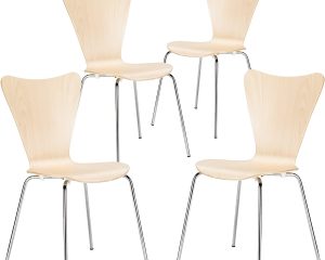 I have been shopping for kitchen chairs and this seems like a great bargain! Right now, get the Poly and Bark Elgin Wooden Dining Side Chair with Chrome Legs, Stackable, 250 lbs Capacity, Natural (Set of 4) for only $102.38. Delight your dining table with the clean lines and modern profile of the Elgin Side Chair. Boasting a sleek chrome steel base, this ingenious chair