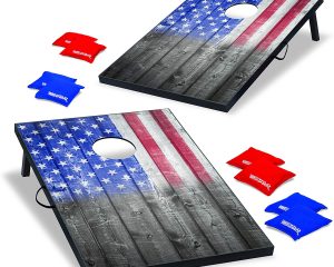 Wild Sports USA Flag Cornhole Outdoor Game Set, MDF Wood, 2′ x 3′ Foot, Red/White/Blue (TT-SAS-03) $29.97