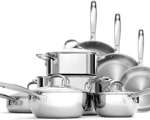 This is a phenomenal deal for tri-ply cookware. Right now you can get the OXO Good Grips Tri-Ply Stainless Steel Pro 13 Piece Set for only $239.99. That’s the lowest price on record! The 13 Piece Set includes an 8″ Open Fry pan, 10″ Open Fry pan, 12″ Open Fry pan, 1.5 Quart Covered Saucepan, 2.5 Quart Covered Saucepan, 9.5″ Covered Skillet, 3 Quart Covered