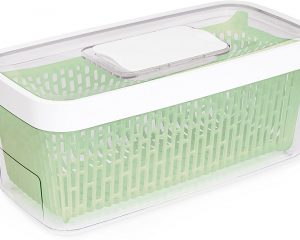 Huge price drop on the OXO Good Grips GreenSaver Produce Keeper – Large size. Get it right now for only $12.99! Waste less and save more with OXO GreenSaver Produce Keepers, a complete food storage system designed to keep produce fresher longer The enhanced carbon filter traps and absorbs ethylene gas, slowing down the aging process and reducing spoilage The elevated colander lifts produce up