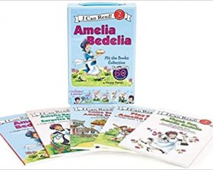 Learn to read with the classic Amelia Bedelia, on the road or at home! With a brightly colored, easy-carry handle and a Velcro-tabbed cover, this little suitcase includes five Level 2 classic Amelia Bedelia I Can Read stories inside, perfect for kids who can read on their own but still need a little help. This boxed set is ideal for introducing new readers to the literal-minded maid’s