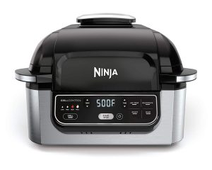 Lowest price ever on the Ninja Foodi 5-in-1 4-qt. Air Fryer, Roast, Bake, Dehydrate, Indoor Electric Grill! Get it right now for only $169.99. The Ninja Foodi Grill. The grill that sears, sizzles, and air fry crisps. Indoor grill and air fryer 500F air circulates around food for amazing Surround Searing while the 500F high-density grill grate creates char-grilled marks and flavors, for food that’s perfectly