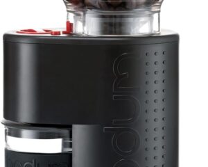 Lowest price ever on the Bodum Bistro Electric Conical Burr Coffee Grinder! Click here to get it for just $50.39. The Bistro Burr Grinder consistently crushes beans between stainless steel conical burrs. This process also preserves the bean’s intrinsic flavor and aroma better than a blade grinder. Push button, pre-set timer allows users to grind the exact amount of coffee needed, keeping beans fresh and