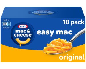 Clip the 15% off coupon and check out via Subscribe & Save to get the Kraft Easy Mac Original Mac & Cheese Microwavable Packets, 18 ct for only $5.58. One 18 ct box of Kraft Original Easy Mac Macaroni & Cheese Dinner Single Serve Packets Kraft Easy Mac and Cheese contains no artificial flavors, preservatives or dyes Packets include macaroni pasta and cheese sauce mix