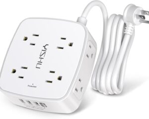 Hurry and grab the YISHU 6 Ft Surge Protector Power Strip for only $8.48. That’s a 50% savings! 【4+4 Outlets Power Strip with 4 USB Ports】- The 3-side power strip with 8AC widely outlets and 4 USB charging ports total 4.2A, each USB A port features 5V/2.4A Max output. USB C charging port features 5V/3A MAX. can power up to 12 devices simultaneously.Wide range voltage design,