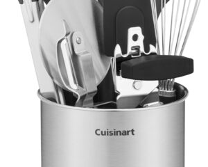 Save 62% off the Cuisinart 10-Piece Primary Tool & Gadget Set with Stainless Steel Crock! Click here to get it for only $24.98. Kitchen Essentials: This set has all the tools and gadgets for a versatile kitchen, and includes a slotted turner, solid spoon, slotted spoon, 12″ nylon tongs, whisk, pizza cutter, can opener, peeler, silicone spatula, and a stainless steel crock. Superior Design: Nonslip,