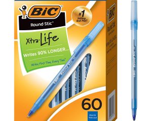 BIC Round Stic Xtra Life Ballpoint Pen, Medium Point (1.0mm), Blue, 60-Count $4.21