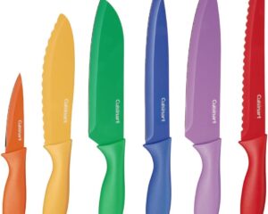 Lowest price ever on the Cuisinart 12-Piece Kitchen Knife Set! Click here to get it for just $9.99. Knife set is 6 knives and 6 knife covers,High-quality stainless steel blades Non-stick color coating for easy slicing Color coding helps you to remember what knife was used during food prep for different types of food. Comes with matching blade guards and ergonomic handles Set Includes: 8″