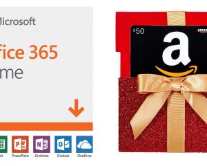 Get a huge bonus when you buy Microsoft Office 365 Home! Get the 12-month subscription with Auto-renewal for up to 6 people for PC/Mac Download and snag a $50 Amazon.com Gift Card as a bonus! Gift Card is affixed inside a specialty pop-up card Gift Card has no fees and no expiration date No returns and no refunds on Gift Cards 12-month subscription for up to 6