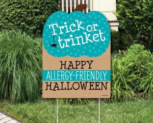Click here to explore big savings on Halloween Decorations by Big Dot of Happiness! Tell your neighbors and trick or treaters that have allergy safe goodies for trick or treaters with this teal pumpkin trick or trinket Halloween lawn sign. This reusable party sign is waterproof, making it perfect for any outdoor space. Displaying your Teal Pumpkin – Halloween Allergy Friendly Trick or Trinket Yard