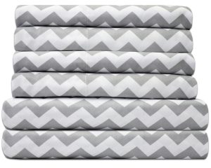 Today only, get a Sweet Home Collection sheet set in Chevron Gray for only $17.99 to $21.99! That’s a great deal for a well rated set of sheets. Sizes range from twin to California King. 100% Fine Brushed Microfiber Polyester Imported Add style, comfort and luxury to your bedroom with these sheet sets. They promote the great night’s sleep you’ve been looking for, making every