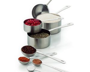 Lowest price ever on this Amco Professional Performance Measuring Cups and Spoons, Set of 8! Get it right now for only $9.46. That is a smoking deal! This measuring set include (4) measuring cups and (4) measuring spoons Made from heavy-gauge, high-quality stainless steel; rust resistant The handle is imprinted with the measurement and is pierced to hang for storage With long, comfortable handles, these cups