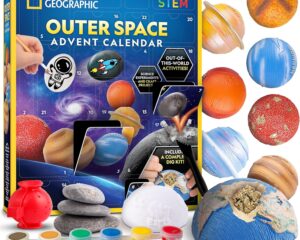 Save 50% off the NATIONAL GEOGRAPHIC 2025 Outer Space Advent Calendar! Get it now for only $14.99. 24 DAYS OF SPACE-THEMED ACTIVITIES – Kids can countdown to Christmas with 24 galactic surprises, including crafts, science experiments, and hands-on discoveries. MAKE & PAINT PLANETS – Paint magnet-backed models of all 8 planets in our solar system for a creative and educational space-themed activity. DECORATE WITH GLOWING