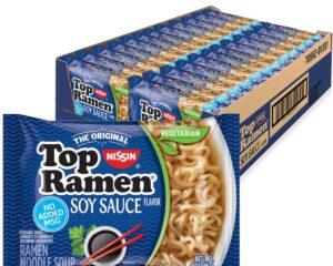 Add the Nissin Top Ramen Noodle Soup, Soy Sauce, 3 Ounce (Pack of 24) to your Subscribe & Save to get it for only $6.84. ON-THE-GO RAMEN REVOLUTION: Embrace the convenience of Top Ramen in its portable, microwavable form – perfect for on-the-go lifestyles and busy schedules SAVORY SOY SAUCE INFUSION: Each bowl is enhanced with a unique sesame soy sauce, delivering a rich and