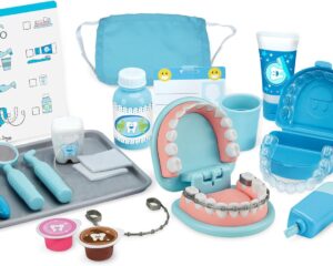 Save 60% off the Melissa & Doug 25-Piece Super Smile Dentist Play Set! Click here to get it for only $15.34. Complete Dentist Play Set: Featuring oversized teeth & big, chunky dental tools—a vibrating drill & polisher, cavity stickers, floss, wiggly teeth, braces & more—just like in a real dental office Skill-Building Pretend Play Toys: Kids can role play teeth cleaning, putting on braces &