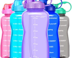 QuiFit Motivational Gallon Water Bottle – with Straw & Time Marker,BPA Free Reusable Large Leakproof Portable Water Jug,for Fitness Camping Outdoor Sports $5.33