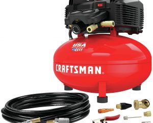 The CRAFTSMAN 6 gallon air compressor features an oil-free pump for maintenance-free operation and a long life. It is lightweight and portable at 30lbs, and features a long runtime and Quick recovery. Click here for the CRAFTSMAN Air Compressor, 6 gallon, Pancake, Oil-Free with 13 Piece Accessory Kit (CMEC6150K) for $129. 0That’s a savings of 21%! 6 gallon pancake maximizes portability and stored air Durable,