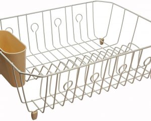 Drainer fits into most sinks to neatly organize your dishes for drying after they have been washed. Holds up to 13 plates and 6 glasses with angled plate holders to separate china for quick drainage. Built-in Microban antimicrobial protection fights the growth of stain- and odor-causing bacteria to keep your rack and dishes looking and smelling fresh. 1-piece plastic-coated wire construction is sturdy to hold