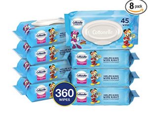 Cottonelle Flushable Wipes help your kids get a comfortable and complete clean after using the toilet—all by themselves. Perfect for potty training as well. Right now, get the Cottonelle Flushable Toddler Wipes for Kids, 8 Flip-Top Packs, 360 Fragrance-Free Wet Wipes in Disney Packaging for only $12! Eight 45-count flip-top packs, total of 360 flushable wet wipes. The resealable lid helps keep the wipes fresh and