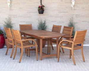 Save up to 20% on Patio Furniture from Amazonia. Enjoy your patio with our Amazonia outdoor collection; this elegant design is made using 100% from FSC certified eucalyptus wood. This outdoor set is resistance to weather and UV radiation which makes this set durable and enjoyable in any outdoor environment. Get the Amazonia Arizona 7 Piece Oval Outdoor Extendable Dining Set for $962.75. DIMENSIONS: This set