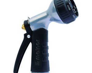 Deluxe metal rear-trigger Multi-Pattern aqua gun. Perfect for smaller hands, the mid-sized Adjustable tip nozzle handles even the largest jobs. The spray adjusts from a fine mist to a Blasting jet. The rubberized grip is comfortable in the hand. This nozzle is perfect for cleaning or general watering tasks in the lawn or garden. Melnor was founded in the USA in 1946, two years later