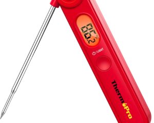 Lowest price ever on the ThermoPro TP03B Digital Meat Thermometer! Click here to get it in Bright Red for only $7.99. 【Easy to Use】Easily release the meat probe at the push of a button, and control the backlight or power with another button. With ThermoPro, cooking becomes a seamless, stress-free experience 【More Accurate Readout in Seconds】Get accurate temperature readings with an impressive +/-0.9°F precision, this
