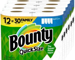 Right now you can score a 12 pack of Bounty Quick-Size Paper Towels, White, Family Rolls (which equals 30 regular rolls) for just $23.13! Pack contains 12 Family Rolls of Bounty white Quick Size paper towels, 12 Family Rolls equals 30 Regular Rolls This pack contains 60 more sheets per pack which means 6 extra days’ worth of paper vs. 12 of Bounty Select-A-Size Double
